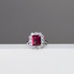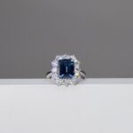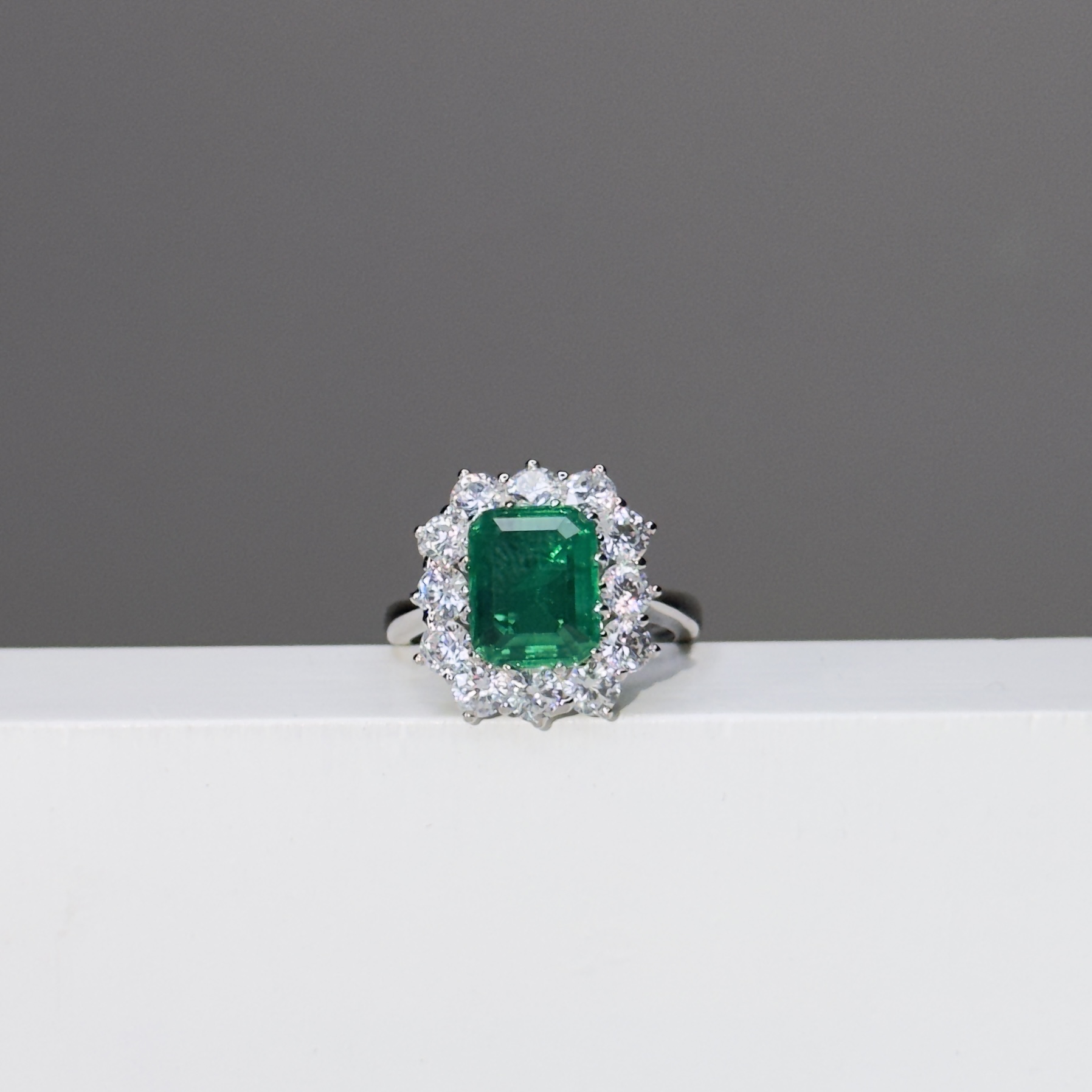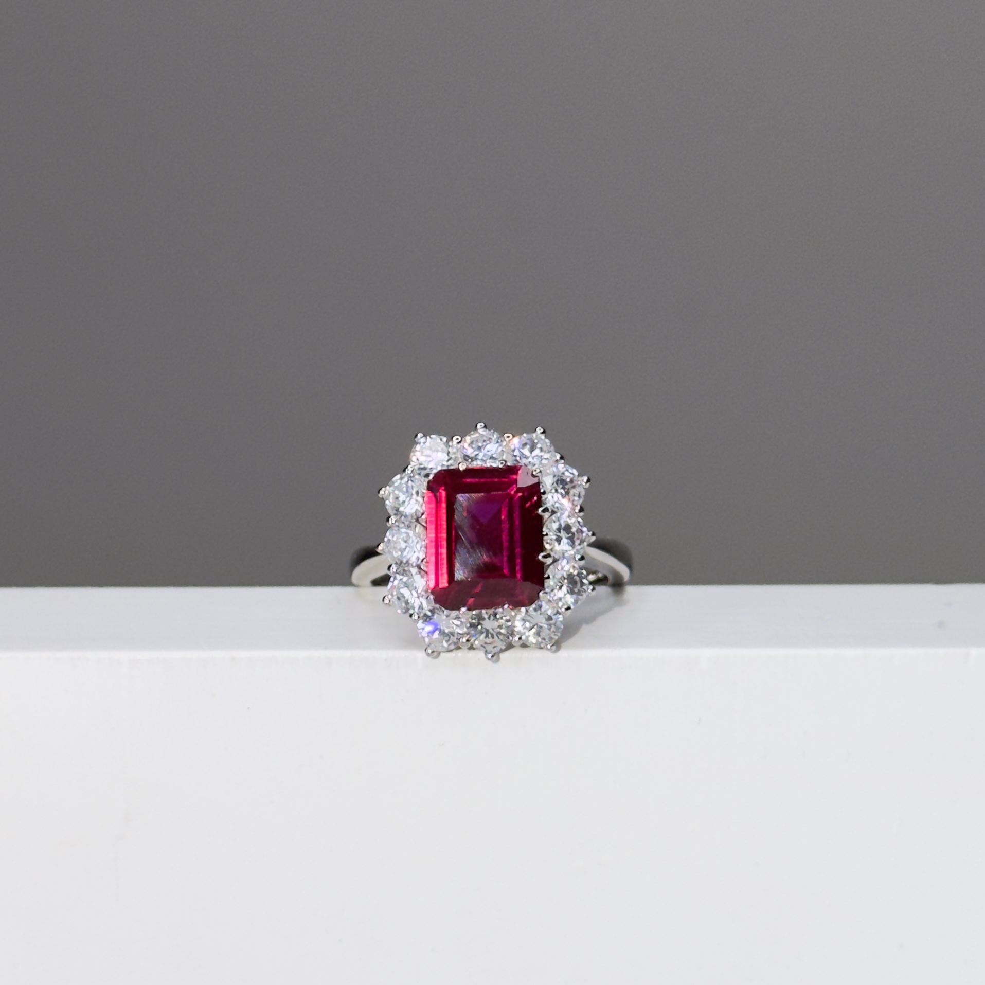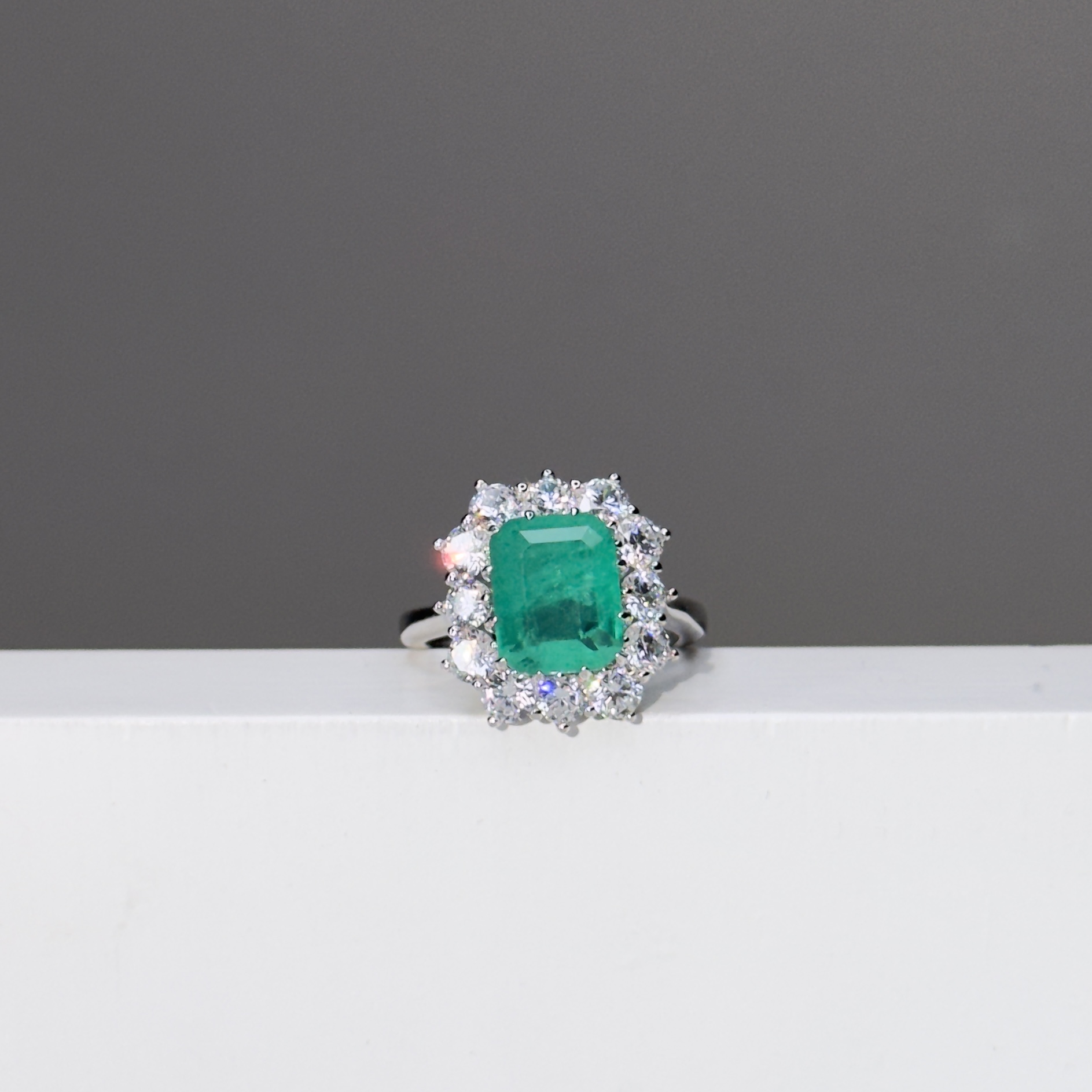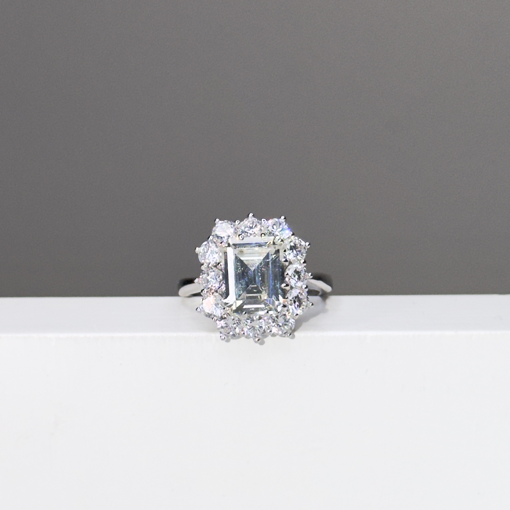 Intramontabile anello in Argento 925 con doppia rodiatura, impreziosito da un quarzo centrale taglio smeraldo contornato da quarzi bianchi taglio brillante.