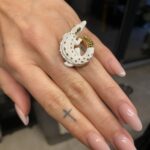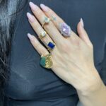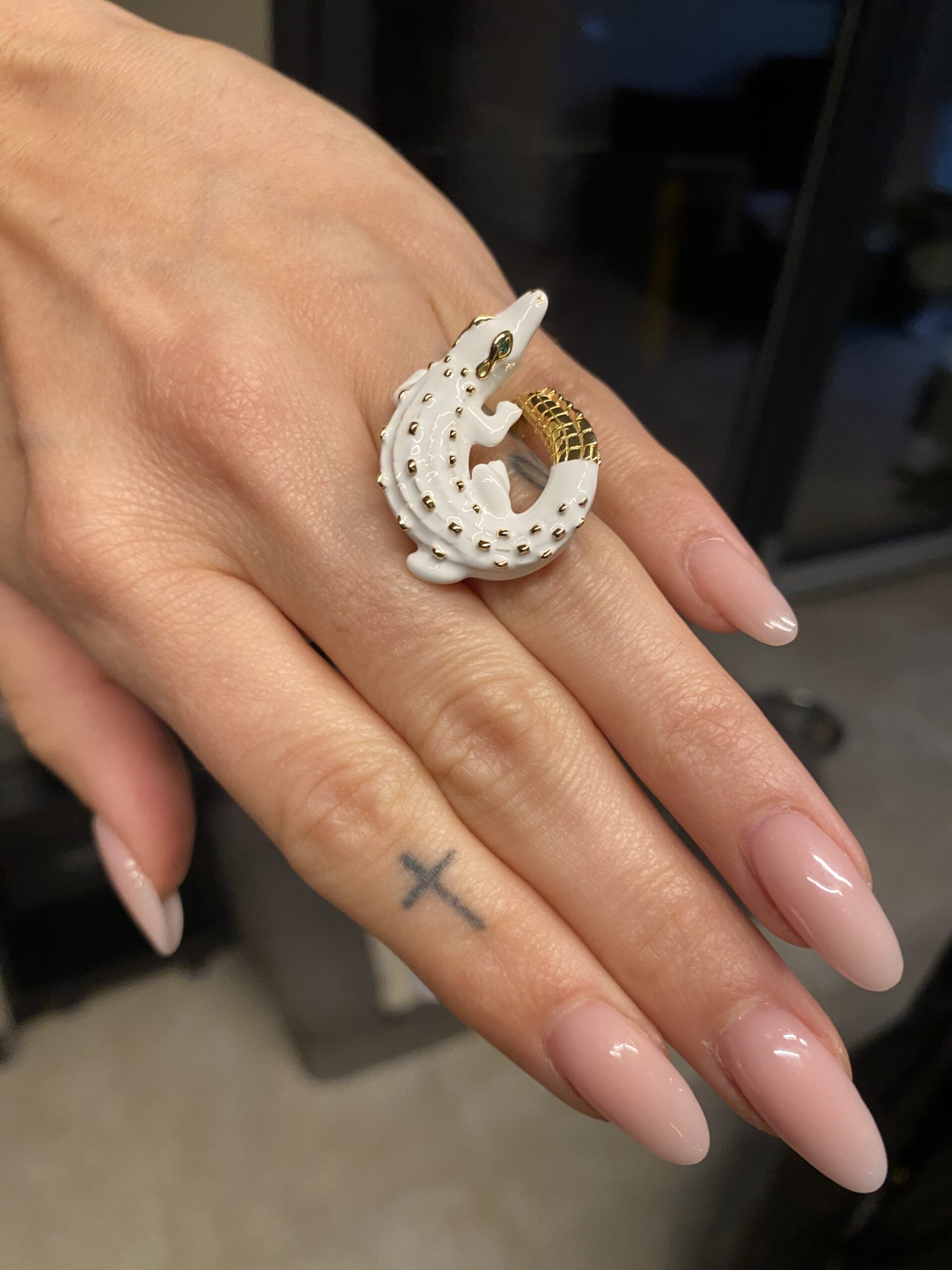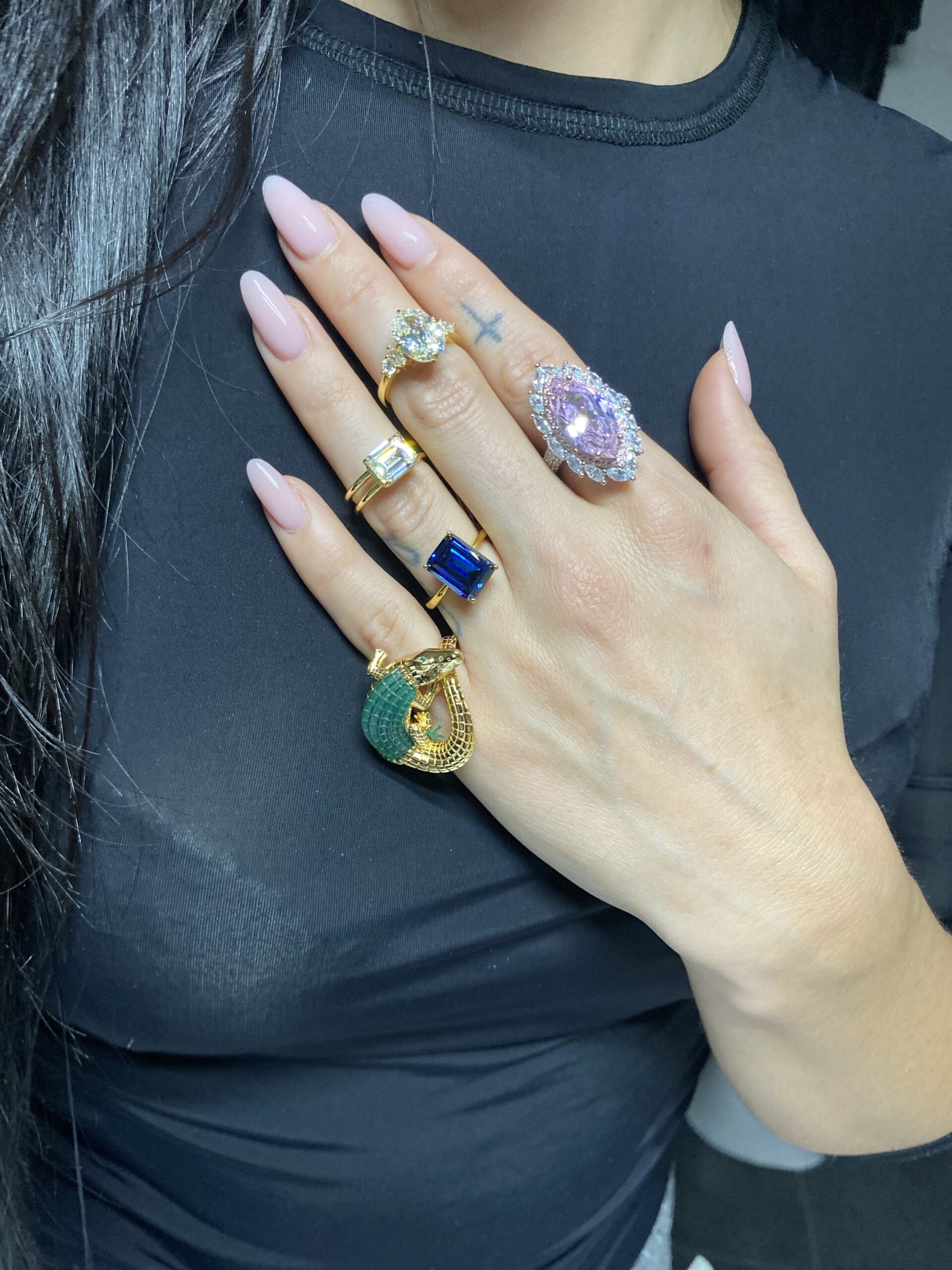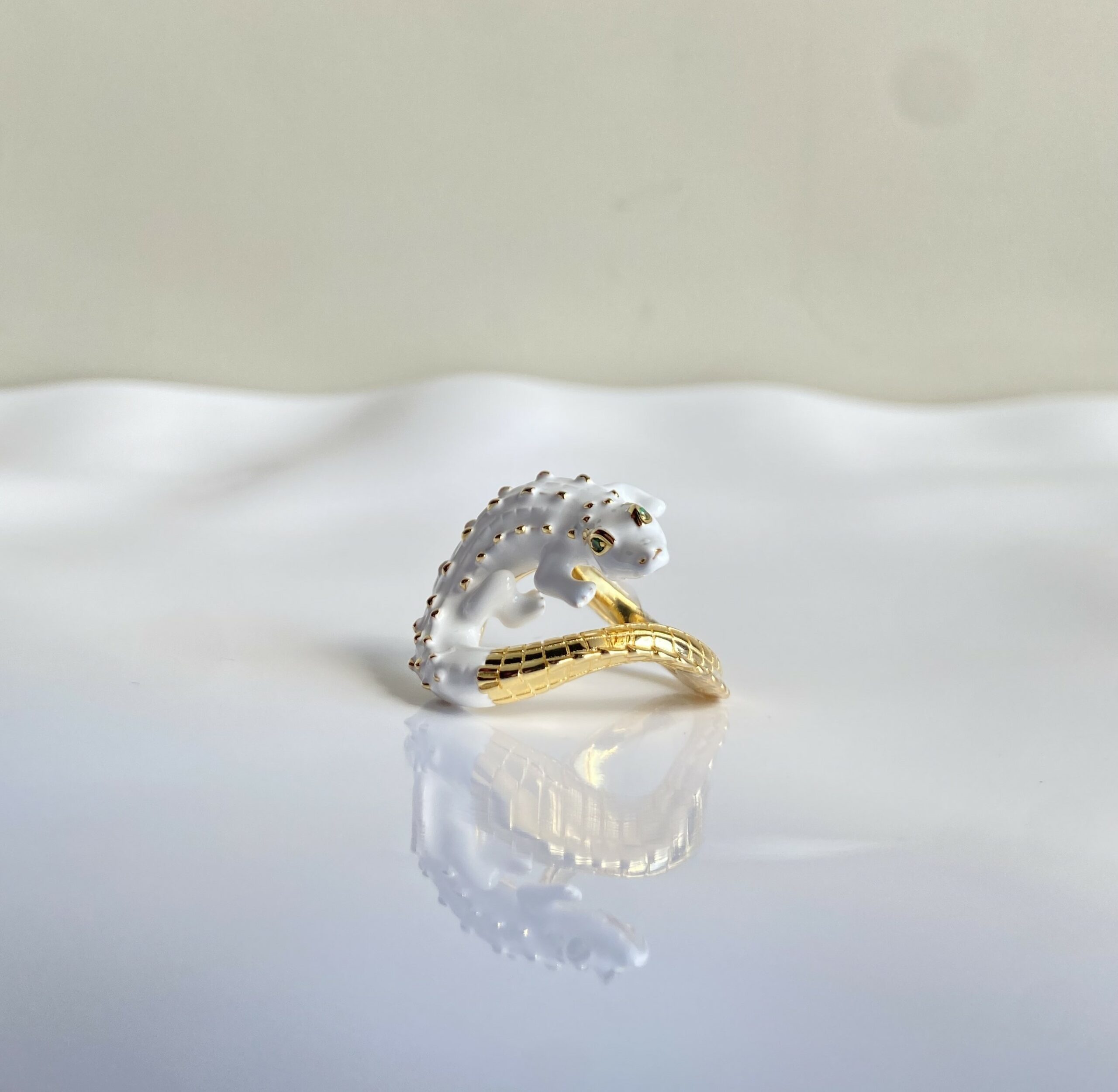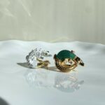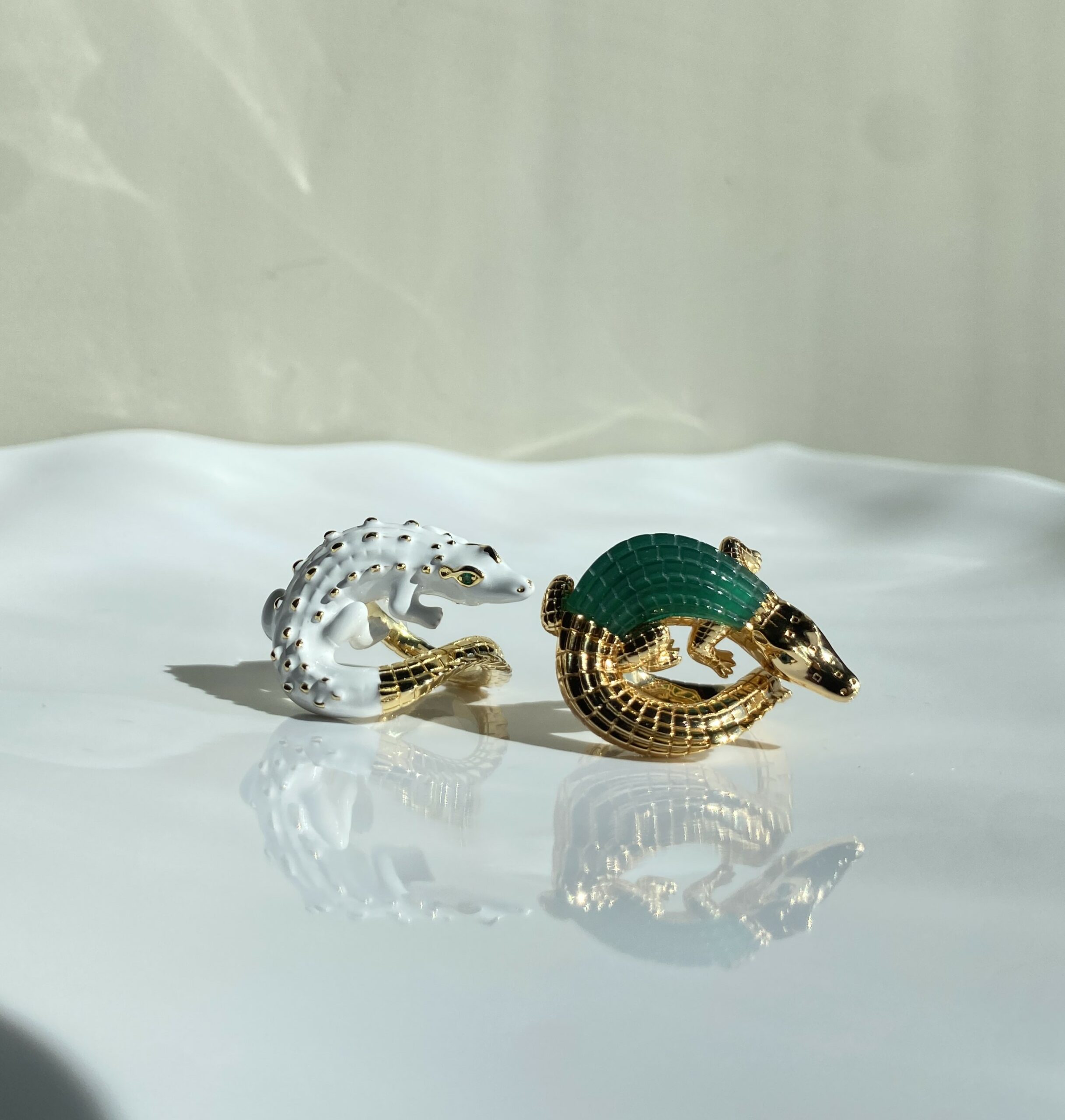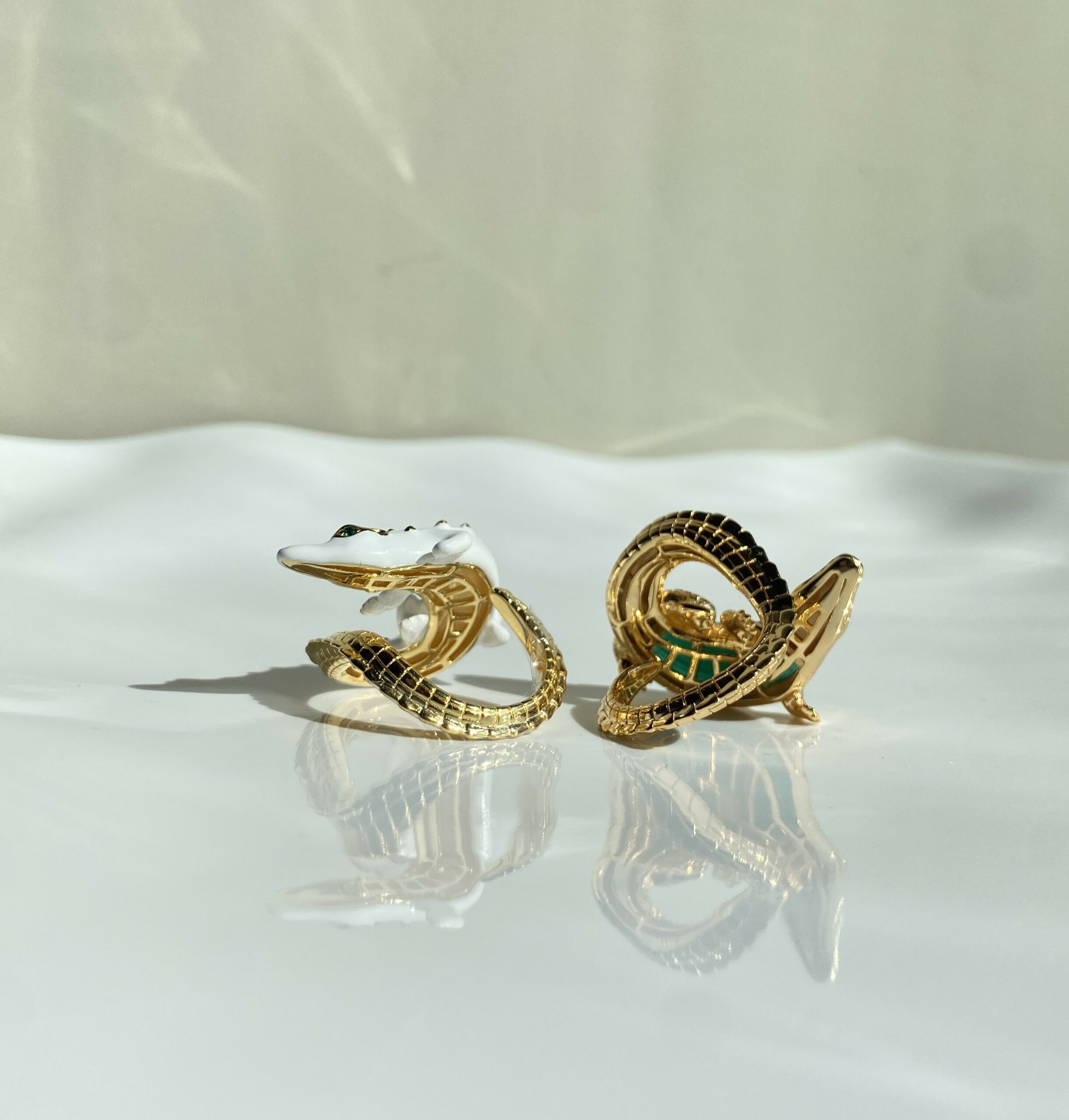 Base argento 925 placcato in oro con smalto bianco o pietre in verde smeraldo.