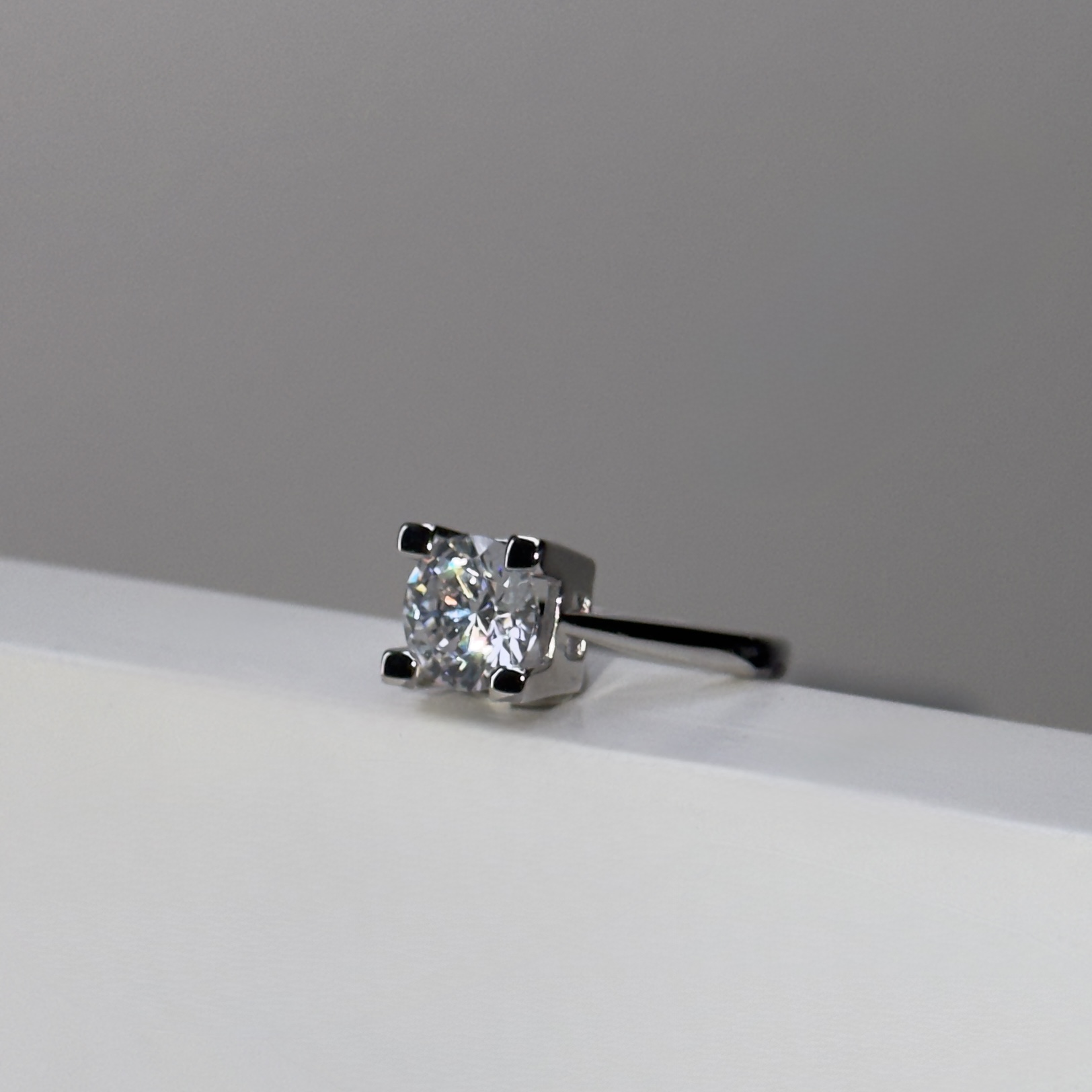 Anello solitario classico realizzato in Argento 925 con doppia rodiatura.