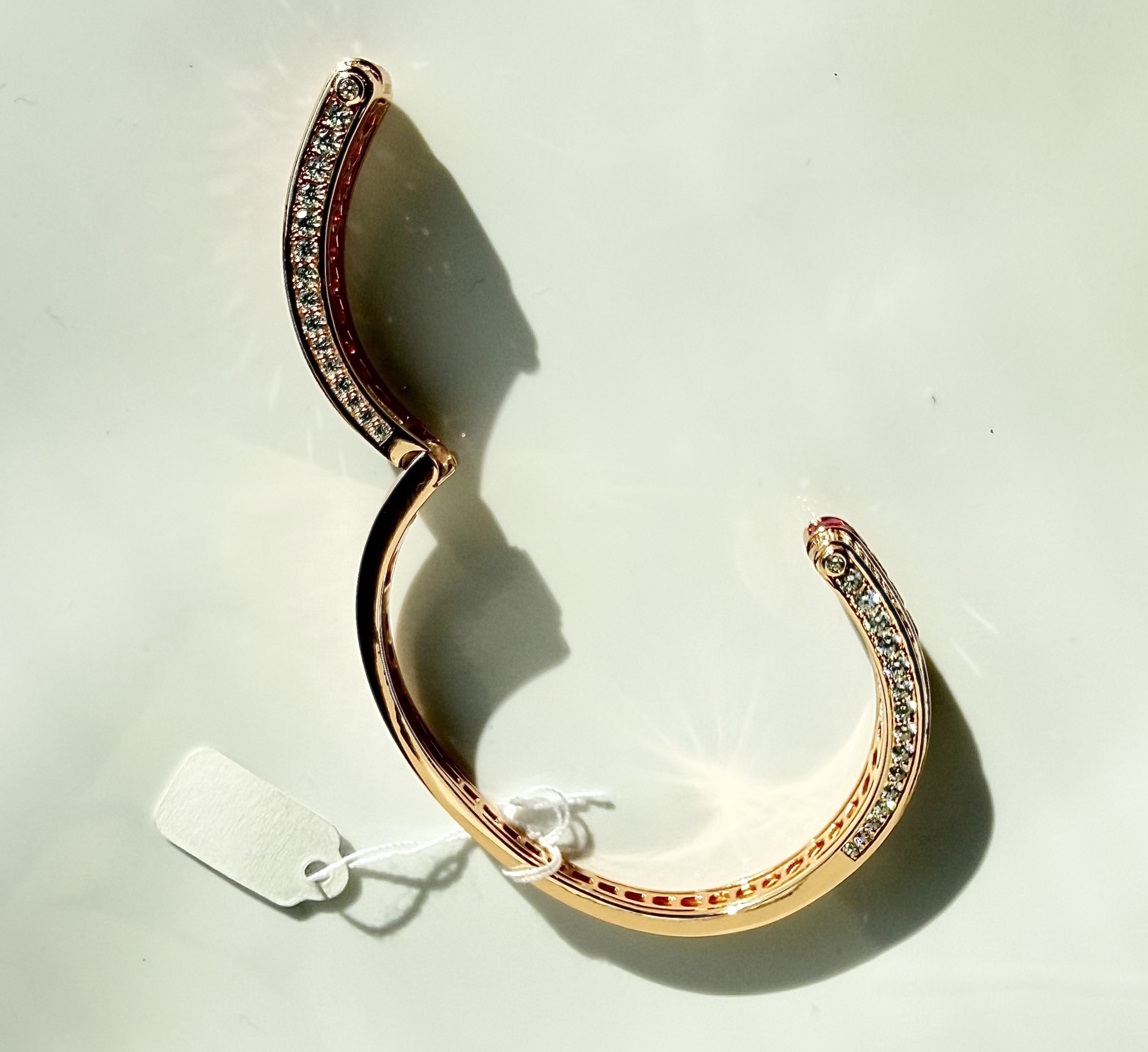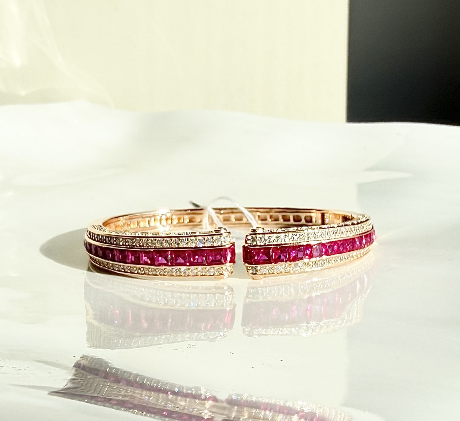 Rigido in Argento 925 e bagno in oro rosa con splendidi quarzi naturali in colorazione bianco e ciliegia.