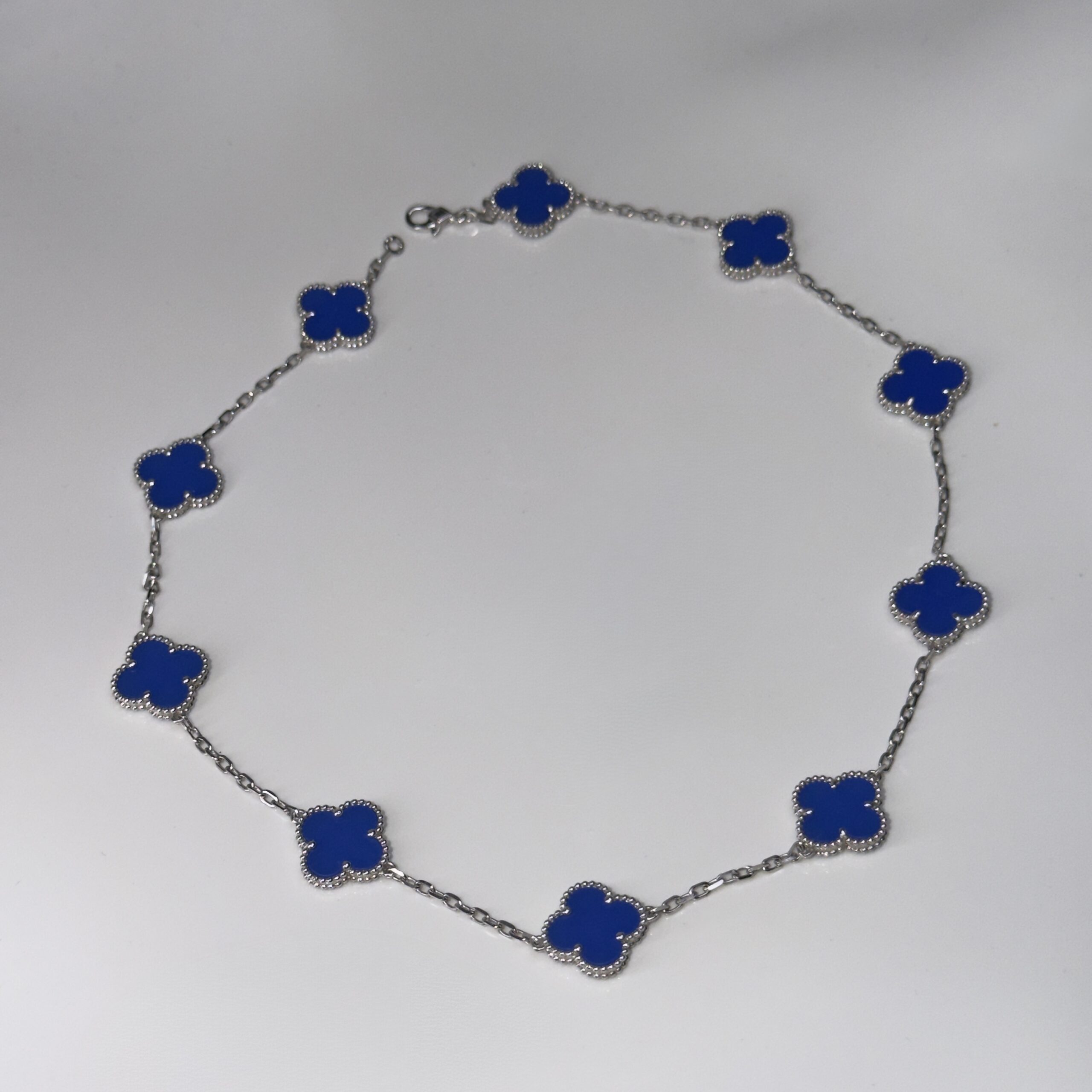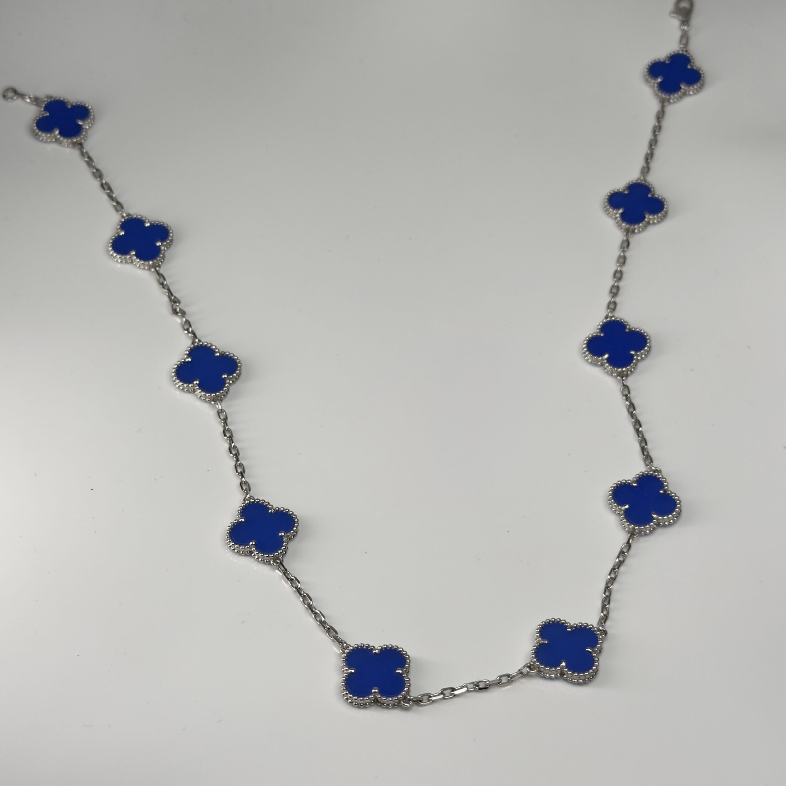 realizzato in Argento 925 e fiori alternati in Agata blu.