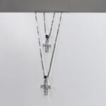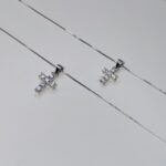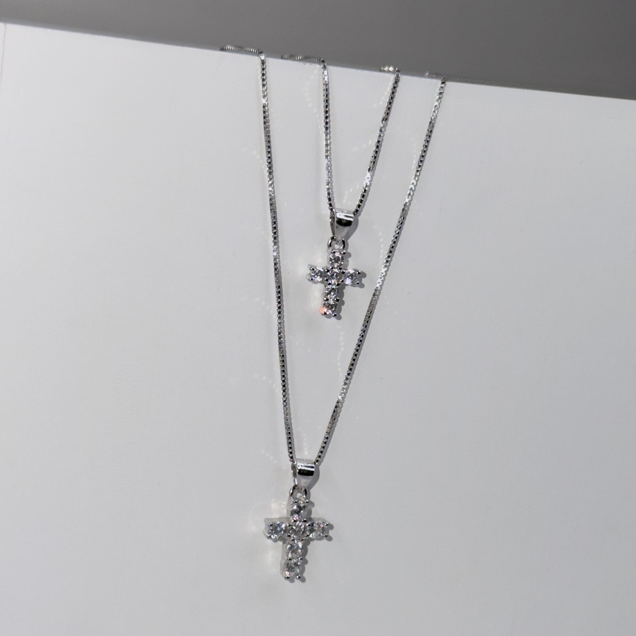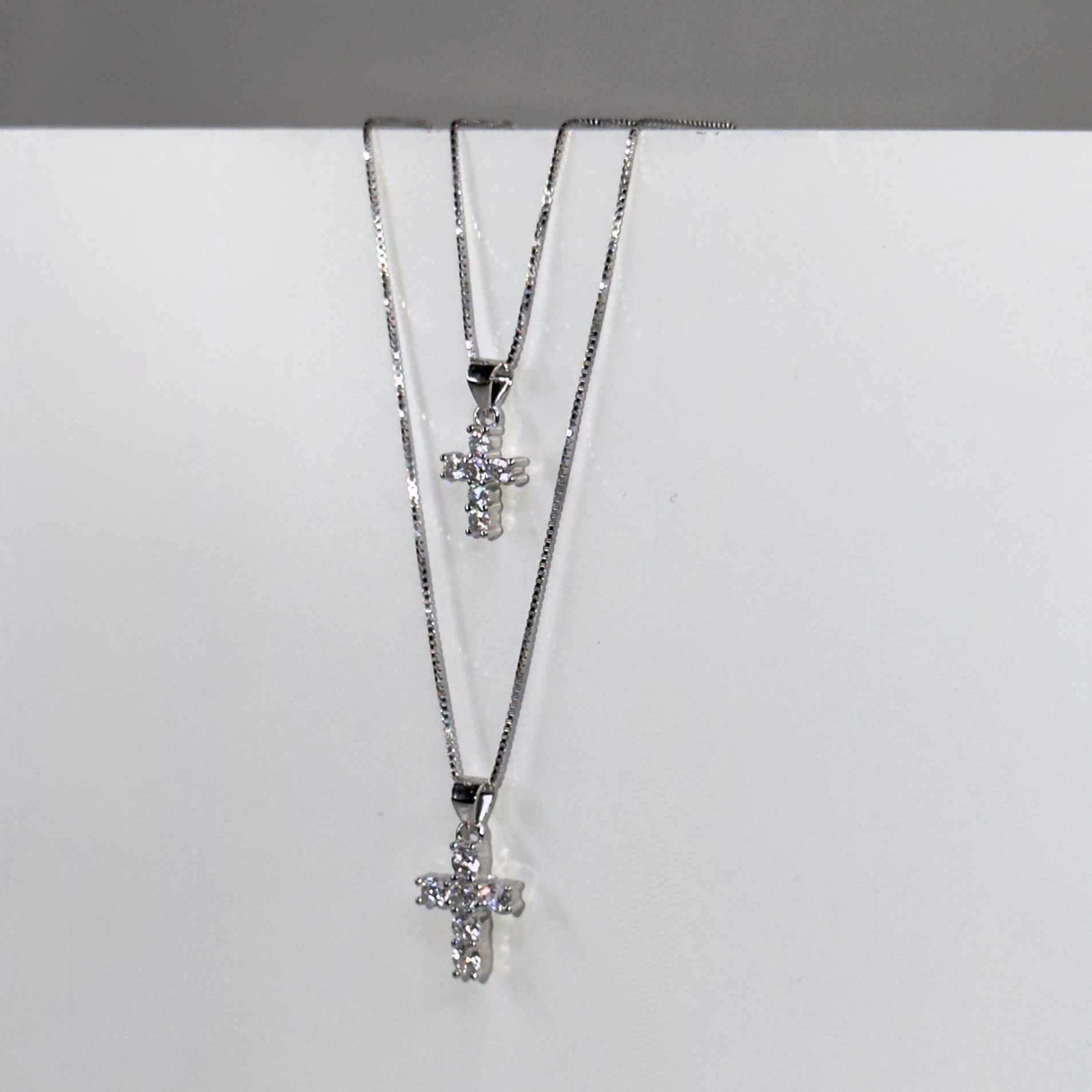Collana unisex con mini croce in Argento 925 e Zirconi bianchi taglio brillante,