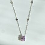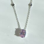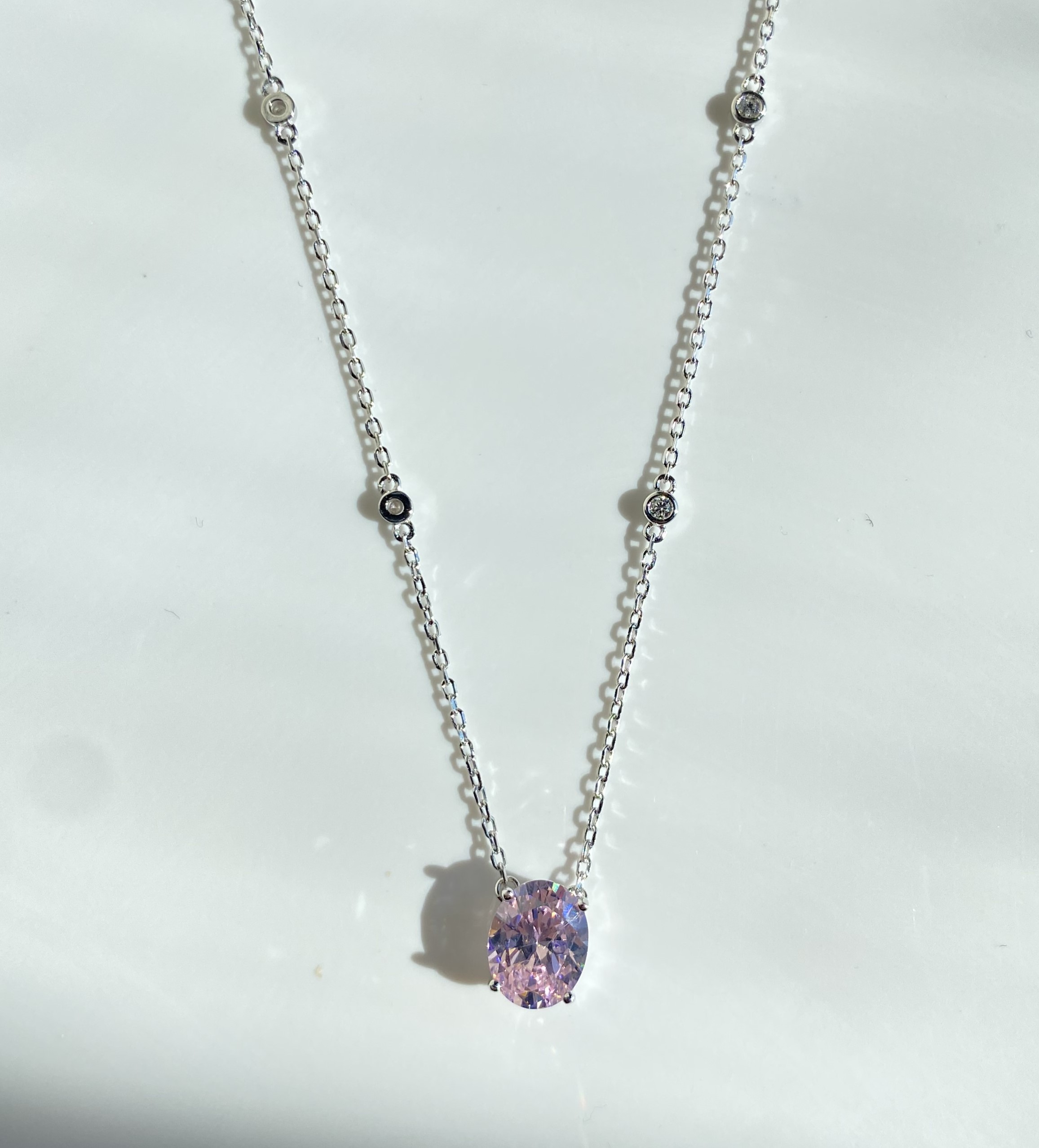 Collana con punto luce da sogno.. Catena in argento 925 con piccole pietre tonde di Moissanite alternate e Quarzo rosa chiaro Ovale