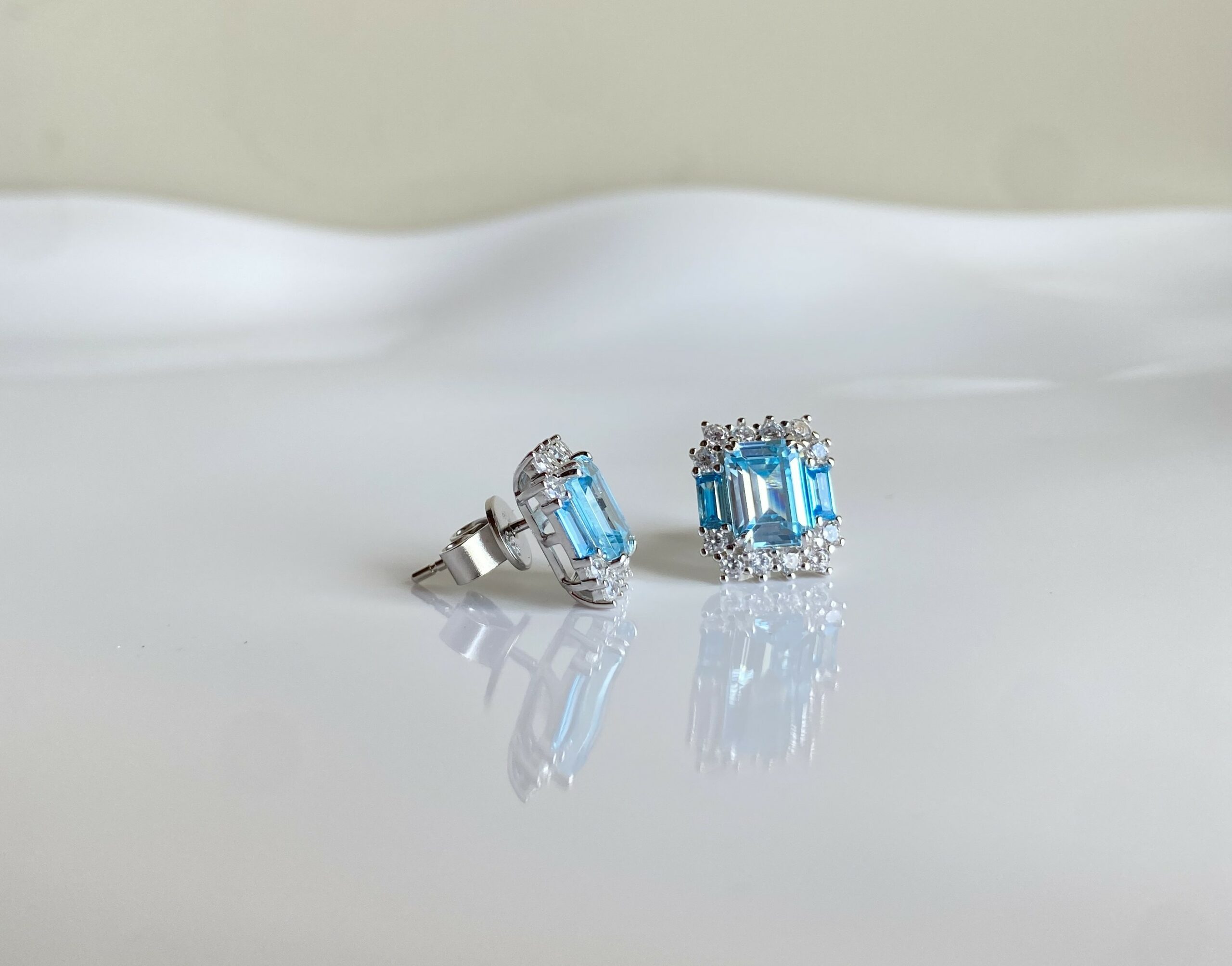 In Argento 925 con doppia rodiatura e quarzi bianchi e acquamarina, questi orecchini a lobo ti sorprenderanno per la loro semplicità raffinatezza.