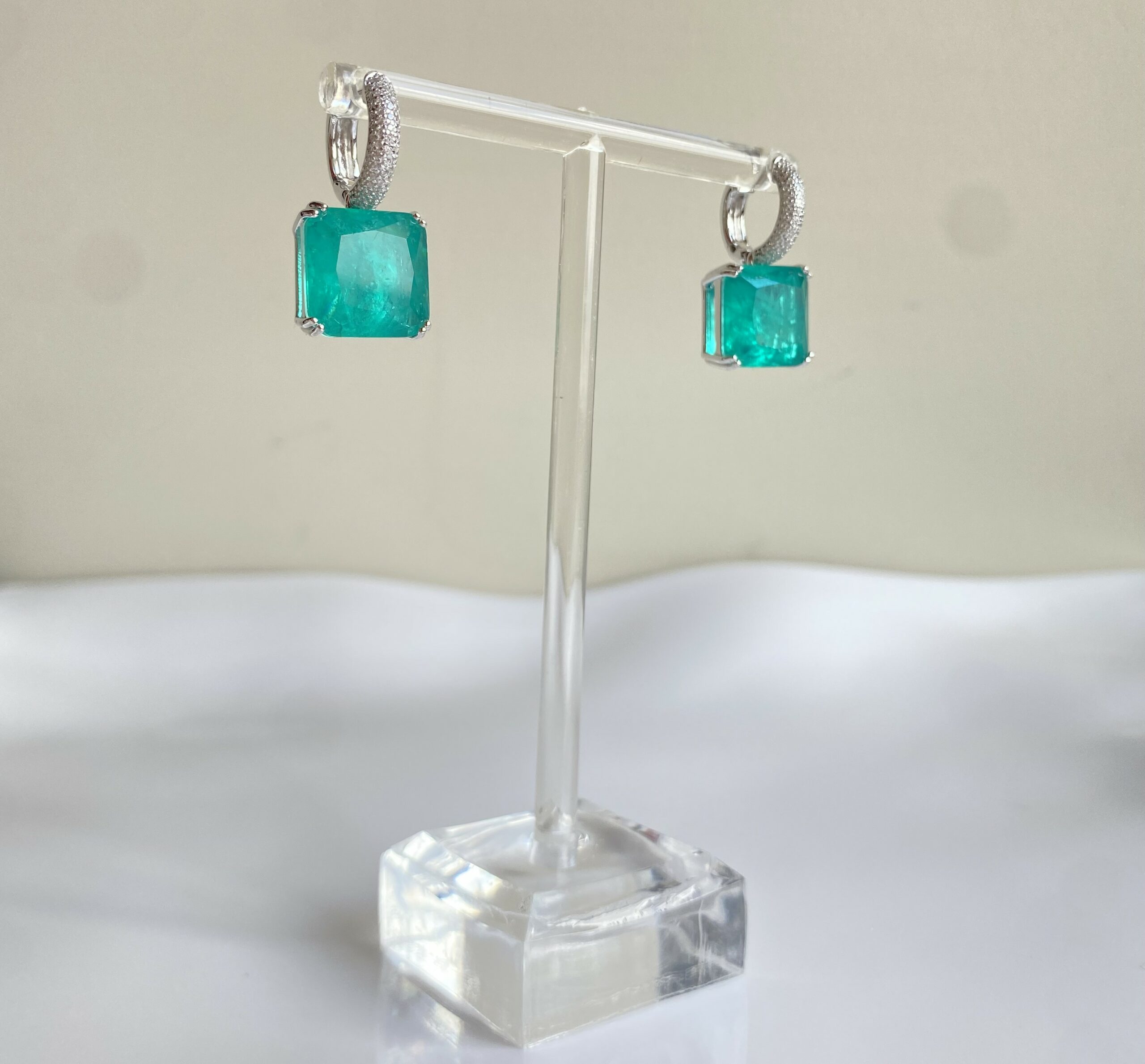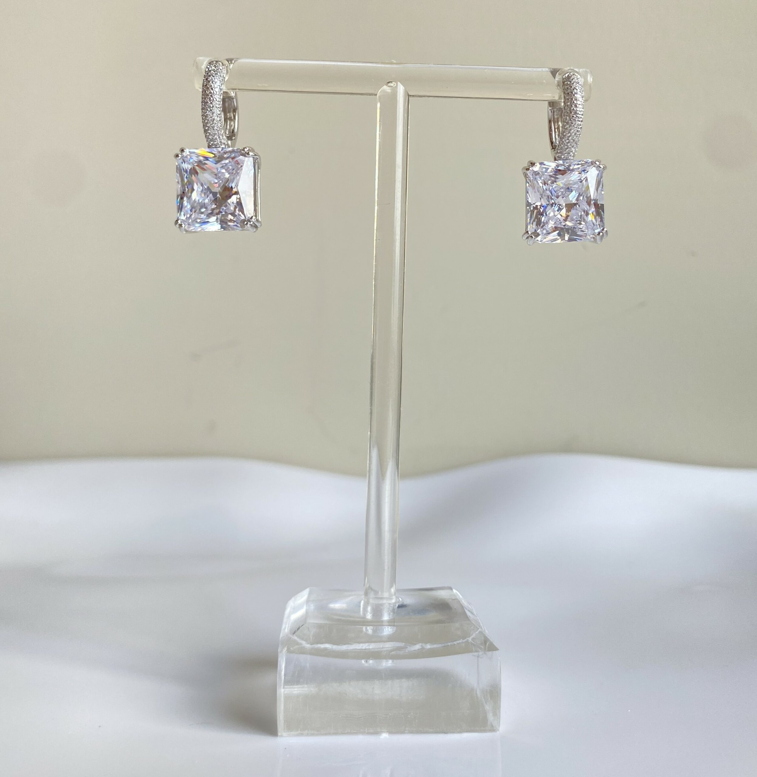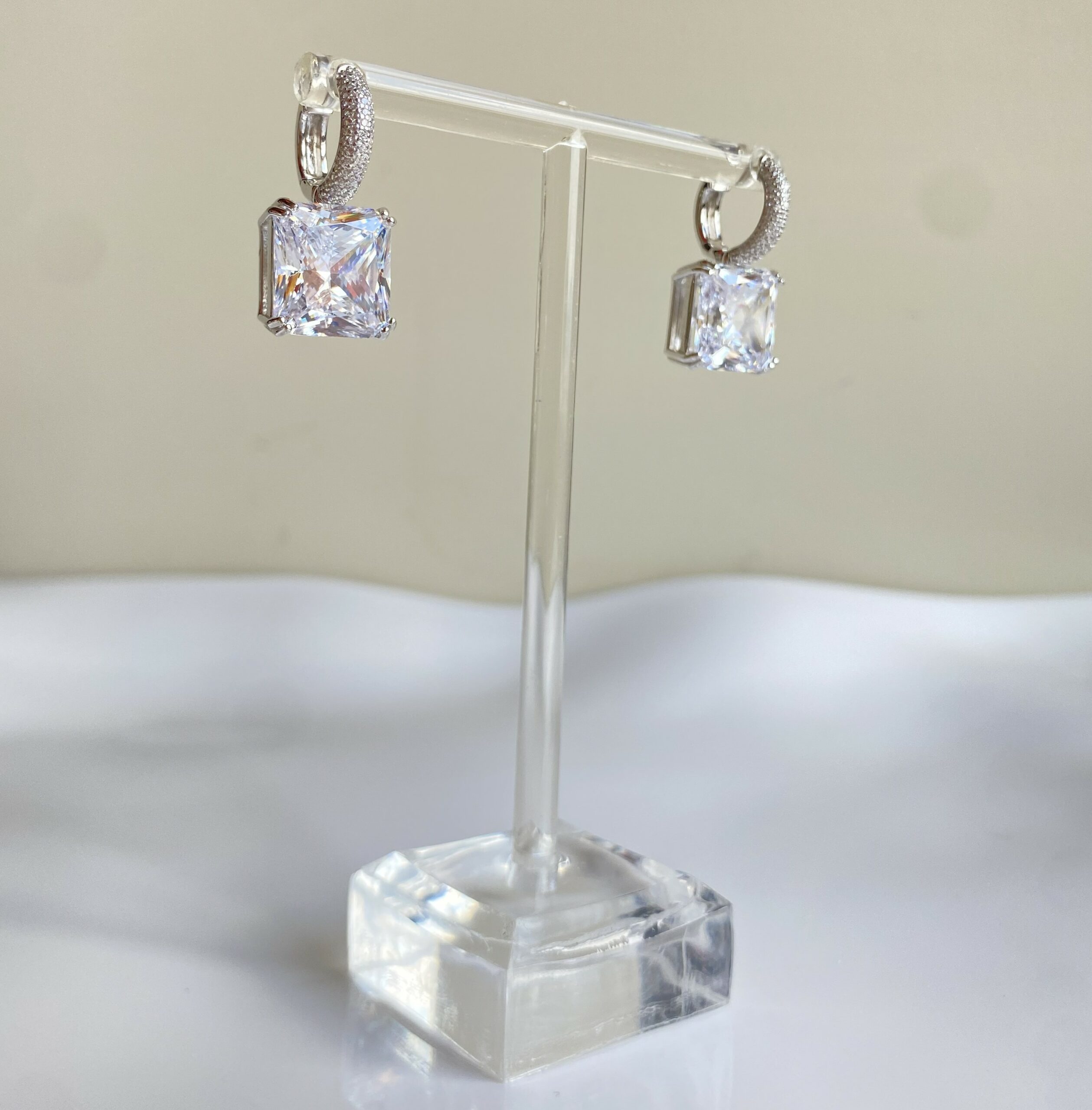 I magnifici orecchini Iris ti rivestono con carattere ed eleganza per ogni occasione. In Argento 925 certificato e quarzi di prima scelta. Cerchietto full pavé di quarzi bianchi e pendente quadrato in vari colori