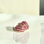 In Argento 925 doppia rodiatura bagno in oro rosa e quarzi in rosso ciliegia con perno e chiusura a clip.