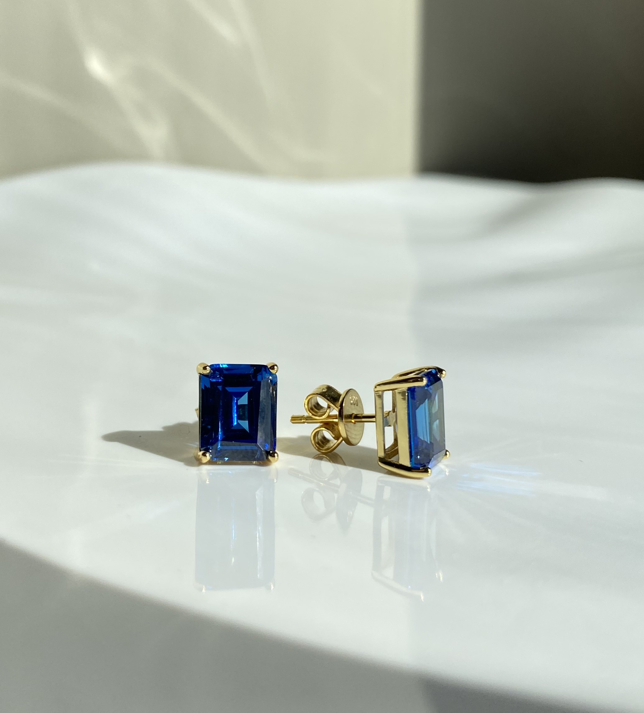 Orecchini a lobo Andromeda. Base in argento 925 placcati in oro con quarzo blu notte rettangolare centrale