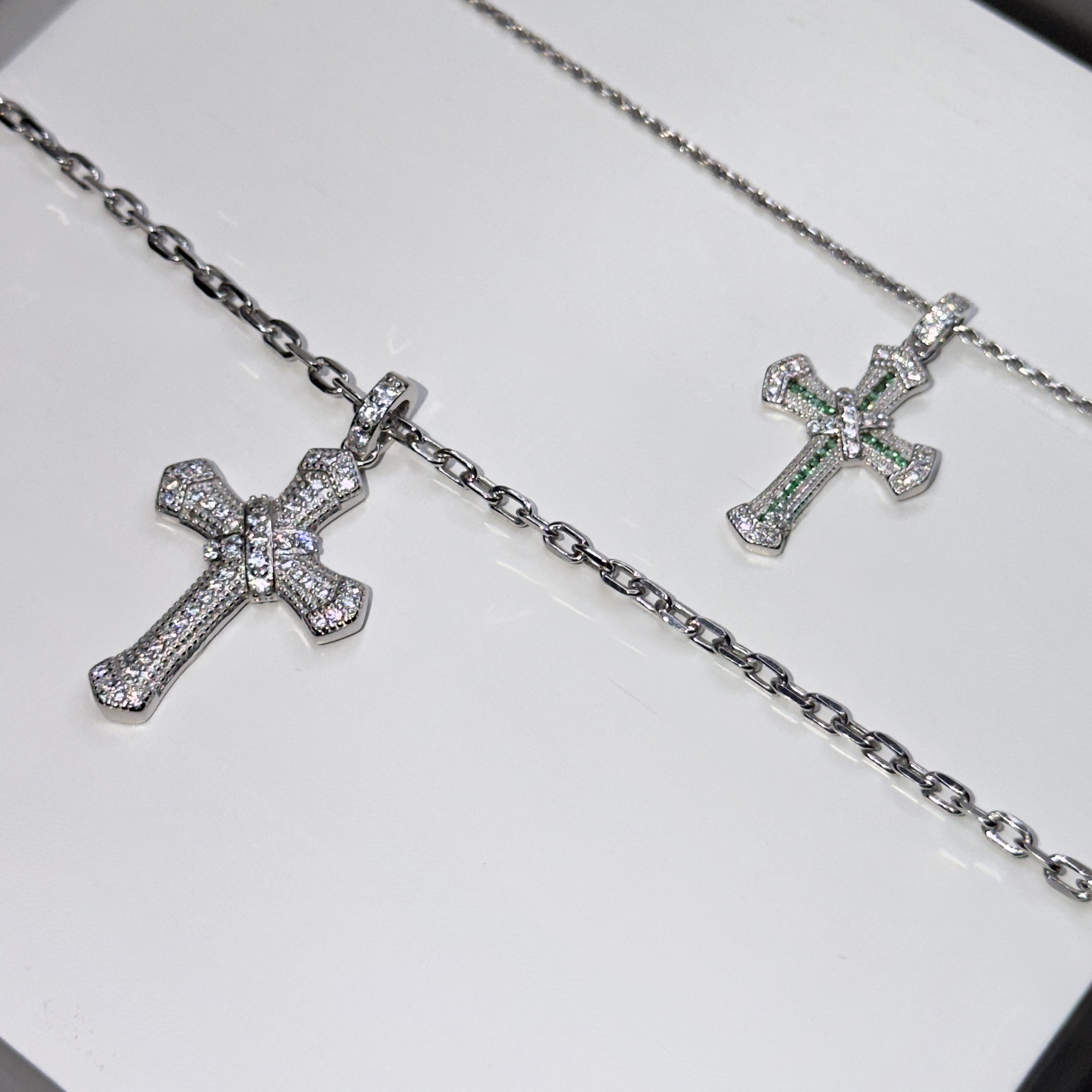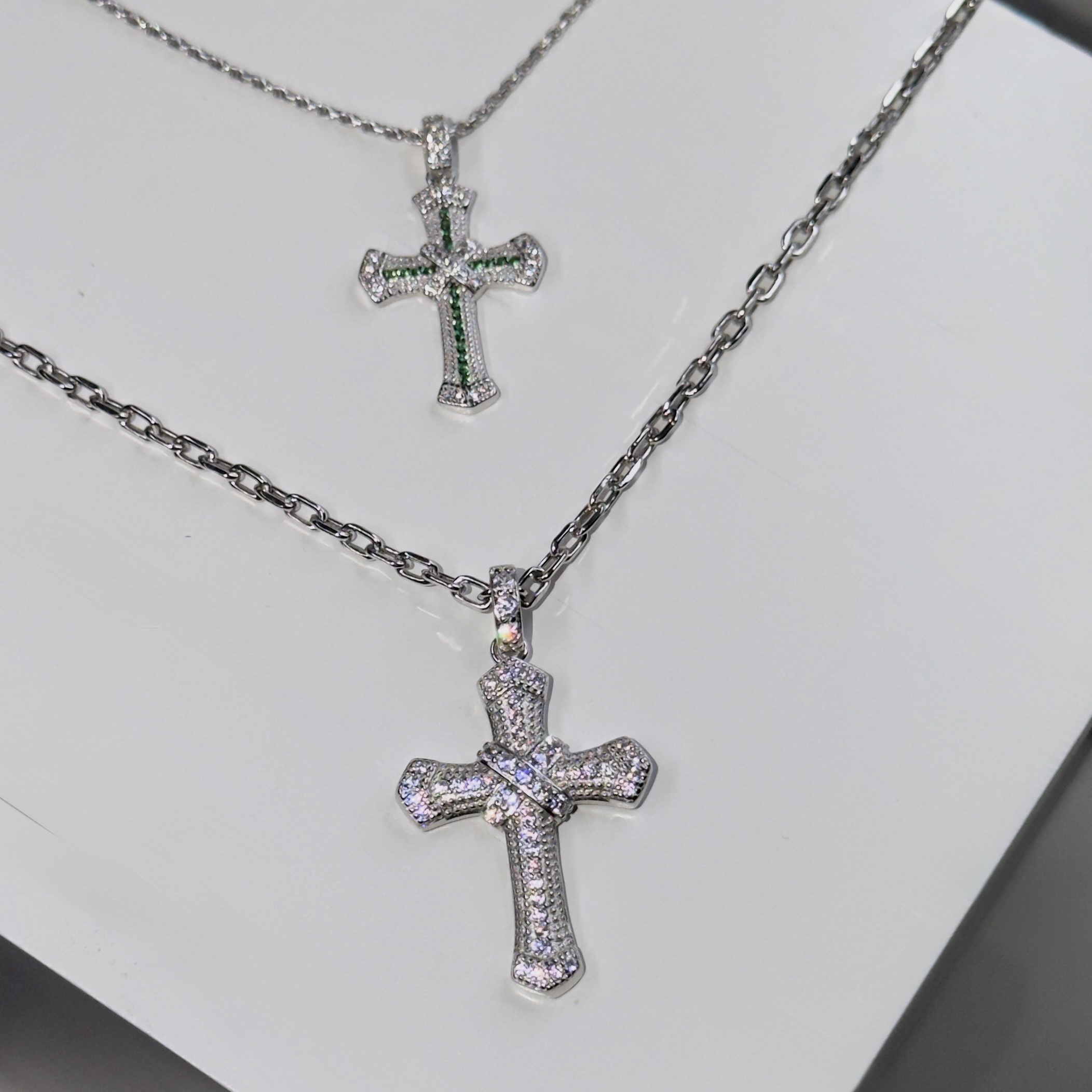 Tags argento 925, collana uomo, croce verde, gioielli artigianali, regalo, San Valentino, tutti i giorni, zirconi bianchi, zirconi verdi